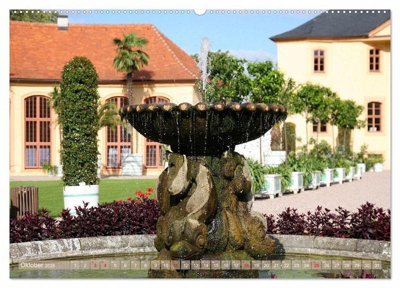 Oktober: Delphinbrunnen vor Orangerie, Schloss Belvedere