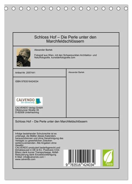 QUALITÄT - Hochwertiger Fotokalender mit 12 wunderschönen Motiven auf lichtbeständigem Bilderdruckpapier, robuste Spiralbindung.NACHHALTIG - deutliche Abfallreduzierung durch bedarfsgerechte Einzelstückfertigung, umweltfreundliches FSC-zertifiziertes Papier, Produktionin Deutschland, klimabewusste Logistik.PERFEKTES GESCHENK - Kalender für Freunde und Familie, für Kinder und Erwachsene, jung und alt, zu Weihnachten, Geburtstag oder zwischendurch.VIELFALT - Bildkalender in verschiedenen Formaten, z.B. DIN A5, DIN A4, DIN A3 sowie DIN A2. Ob Naturmotiv, Gemälde oder Fotos, ideal für ein persönliches Wohlfühlambiente.Die Perle unter den Marchfeldschlössern von Autor(in): Alexander Bartek