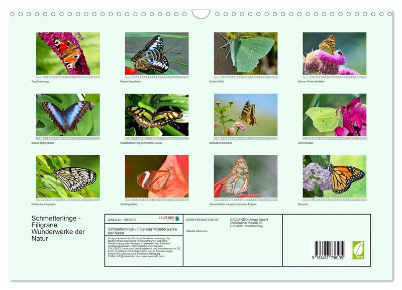 QUALITÄT - Hochwertiger Fotokalender mit 12 wunderschönen Motiven auf lichtbeständigem Bilderdruckpapier, robuste Spiralbindung mit Aufhängebügel.NACHHALTIG - deutliche Abfallreduzierung durch bedarfsgerechte Einzelstückfertigung, umweltfreundliches FSC-zertifiziertes Papier, Produktion in Deutschland, klimabewusste Logistik.PERFEKTES GESCHENK - Kalender für Freunde und Familie, für Kinder und Erwachsene, jung und alt, zu Weihnachten, Geburtstag oder zwischendurch.VIELFALT - Bildkalender in verschiedenen Formaten, z.B. DIN A5, DIN A4, DIN A3 sowie DIN A2. Ob Naturmotiv, Gemälde oder Fotos, ideal für ein persönliches Wohlfühlambiente.Wunderschöne Schmetterlinge sind hier zur Unterstützung ihrer Filigranheit weichgezeichnet. von Autor(in): Claudia Kleemann