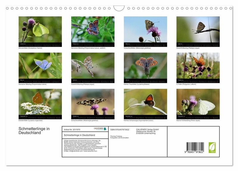 QUALITÄT - Hochwertiger Fotokalender mit 12 wunderschönen Motiven auf lichtbeständigem Bilderdruckpapier, robuste Spiralbindung mit Aufhängebügel.NACHHALTIG - deutliche Abfallreduzierung durch bedarfsgerechte Einzelstückfertigung, umweltfreundliches FSC-zertifiziertes Papier, Produktion in Deutschland, klimabewusste Logistik.PERFEKTES GESCHENK - Kalender für Freunde und Familie, für Kinder und Erwachsene, jung und alt, zu Weihnachten, Geburtstag oder zwischendurch.VIELFALT - Bildkalender in verschiedenen Formaten, z.B. DIN A5, DIN A4, DIN A3 sowie DIN A2. Ob Naturmotiv, Gemälde oder Fotos, ideal für ein persönliches Wohlfühlambiente.Genießen sie die Auswahl der schönsten Motive einheimischer Schmetterlinge aus 10000 Aufnahmen des Berliner Natur- und Landschaftsfotografen Thomas Freiberg nun auch als Kalender. von Autor(in): Thomas Freiberg