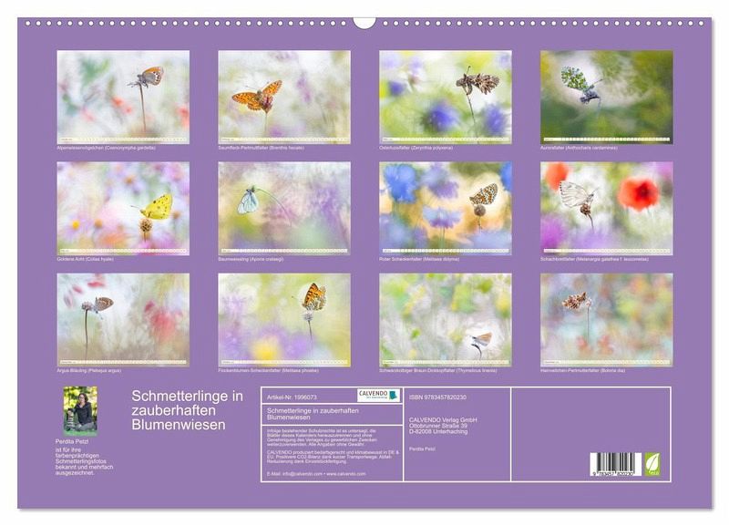 Klassische Makrofotografie war gestern. Die international preisgekrönte Naturfotografin Perdita Petzl portraitiert Schmetterlinge eingebettet in ihren natürlichen Lebensraum: farbenfroh und lebendig, kraftvoll und künstlerisch. Dieser Kalender weiß kleine und große Naturliebhaber und Schmetterlingsfreunde zu begeistern. So haben sie Schmetterlinge noch nie gesehen!