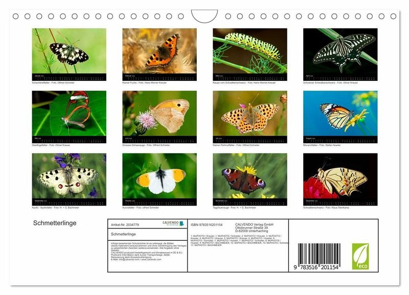 QUALITÄT - Hochwertiger Fotokalender mit 12 wunderschönen Motiven auf lichtbeständigem Bilderdruckpapier, robuste Spiralbindung mit Aufhängebügel.NACHHALTIG - deutliche Abfallreduzierung durch bedarfsgerechte Einzelstückfertigung, umweltfreundliches FSC-zertifiziertes Papier, Produktion in Deutschland, klimabewusste Logistik.PERFEKTES GESCHENK - Kalender für Freunde und Familie, für Kinder und Erwachsene, jung und alt, zu Weihnachten, Geburtstag oder zwischendurch.VIELFALT - Bildkalender in verschiedenen Formaten, z.B. DIN A5, DIN A4, DIN A3 sowie DIN A2. Ob Naturmotiv, Gemälde oder Fotos, ideal für ein persönliches Wohlfühlambiente.Schmetterlinge vor der Kamera von Autor(in): Klaus Steinkamp