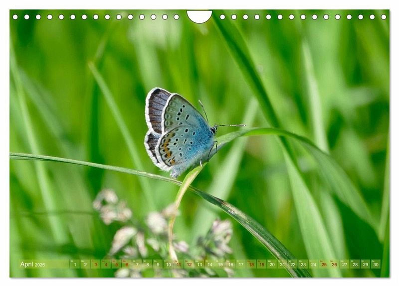 April: Hauhechelbläuling auf Grashalm