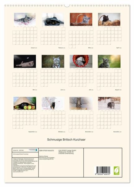 Die Britisch Kurzhaar gehört durch ihren sanften Charakter und ihre intelligente Art zu den beliebtesten Wohnungskatzen. Die Fotografin hat die Samtpfötchen meisterhaft in Szene gesetzt. Tauchen Sie ein, in die wundervolle Welt dieser einzigartigen Rasse. Dieser hochwertige Kalender ist das ideale Geschenk für jeden Katzenfreund.