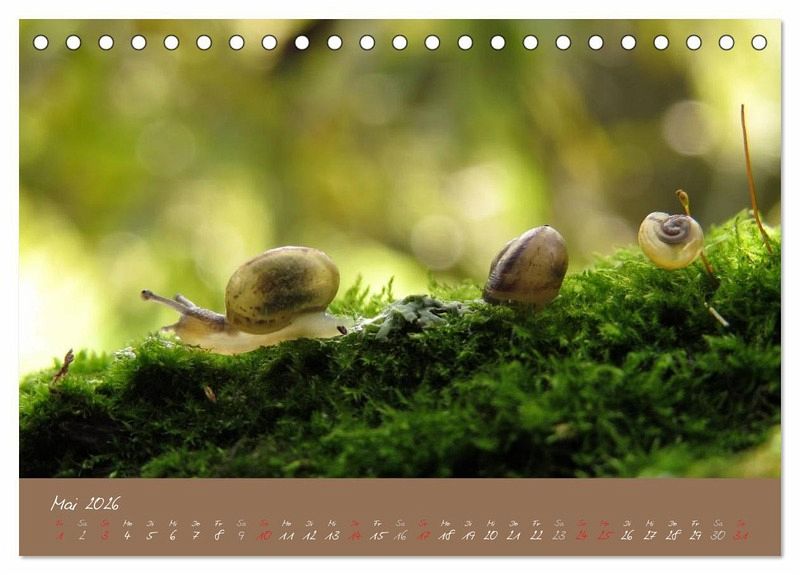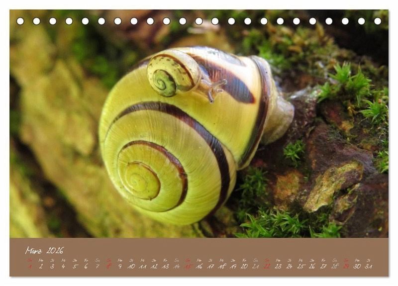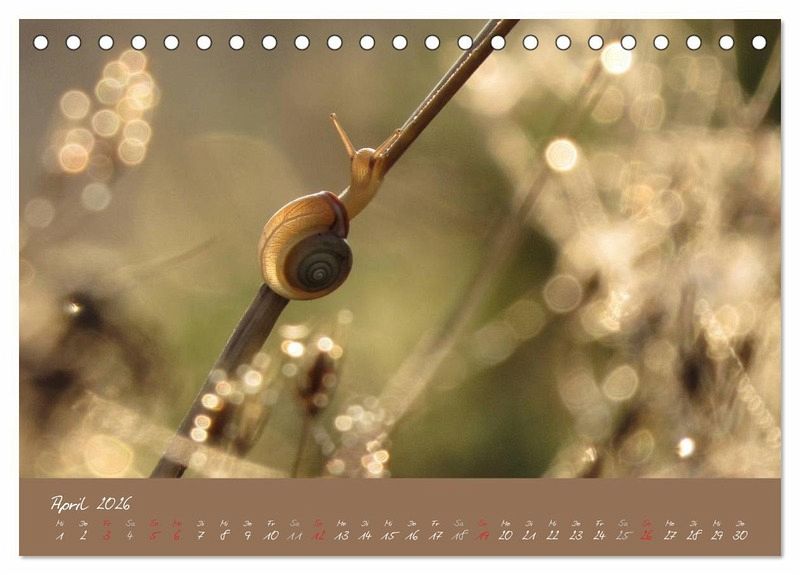 Die kleinen Schneckchen tragen ihr Haus durch die Welt und gehen langsam ihrer Wege. Im Kalender gibt es für jeden Monat eine andere kleine Schnecke.