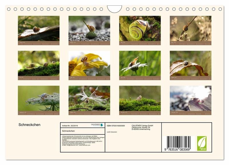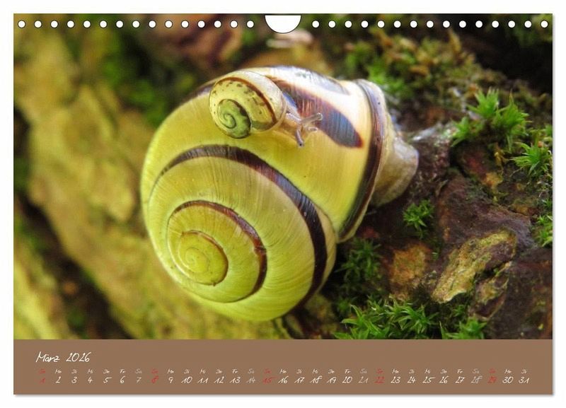 Die kleinen Schneckchen tragen ihr Haus durch die Welt und gehen langsam ihrer Wege. Im Kalender gibt es für jeden Monat eine andere kleine Schnecke.