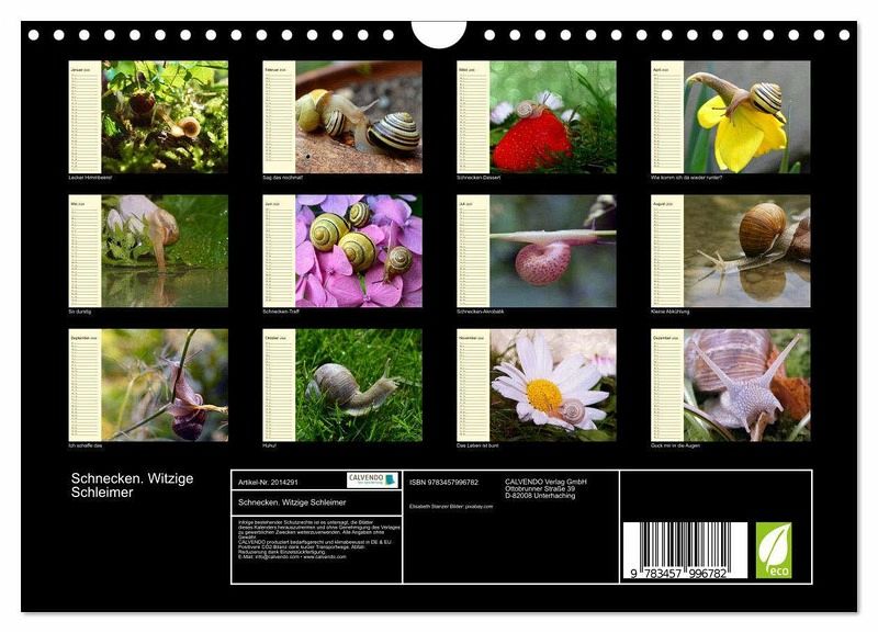 Können Schnecken niedlich sein? Oh ja! Wenn man die süßen kleinen Häuschen auf ihrem Rücken und vor allem die lustigen Gesichter genau betrachtet, wird man feststellen, dass Schnecken absolut niedlich sind. Gut, niemand ist begeistert von einer Schnecke im Salat, aber so ist das nun mal, denn auch diese kleinen Schleimer haben Hunger! Ein süßer Planer für die gesamt Familie.