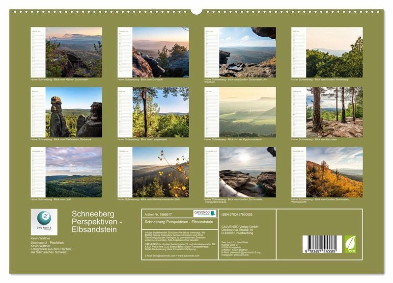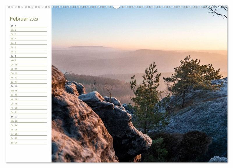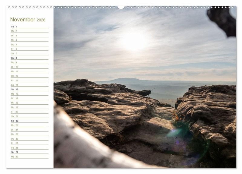Der Hohe Schneeberg fällt auf. Kein Wunder, denn der Gipfel des Decínský Snezník ist mit 723 Metern die höchste Erhebung des Elbsandsteingebirges, seine Silhouette mitsamt Aussichtsturm unverkennbar. Alle Aufnahmen sind von sächsischer Seite aus entstanden, der Tafelberg selbst befindet sich in der Böhmischen Schweiz. Der Kalender ist sozusagen ein grenzübergreifendes Projekt. Viel Freude damit!