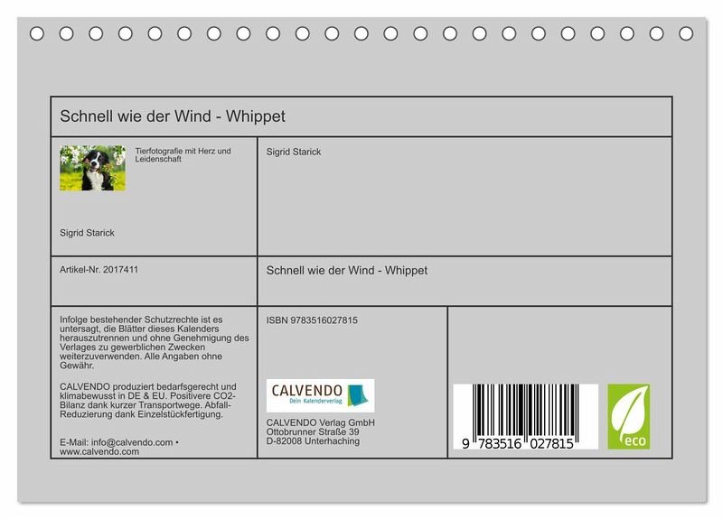 QUALITÄT - Hochwertiger Fotokalender mit 12 wunderschönen Motiven auf lichtbeständigem Bilderdruckpapier, robuste Spiralbindung.NACHHALTIG - deutliche Abfallreduzierung durch bedarfsgerechte Einzelstückfertigung, umweltfreundliches FSC-zertifiziertes Papier, Produktion in Deutschland, klimabewusste Logistik.PERFEKTES GESCHENK - Kalender für Freunde und Familie, für Kinder und Erwachsene, jung und alt, zu Weihnachten, Geburtstag oder zwischendurch.VIELFALT - Bildkalender in verschiedenen Formaten, z.B. DIN A5, DIN A4, DIN A3 sowie DIN A2. Ob Naturmotiv, Gemälde oder Fotos, ideal für ein persönliches Wohlfühlambiente.Whippet´s im Porträt und Action auf 13 wunderschönen Fotos von Autor(in): SiSta-Tierfoto