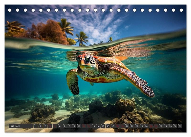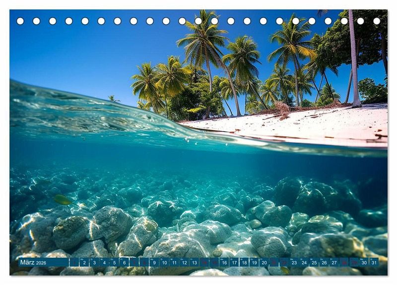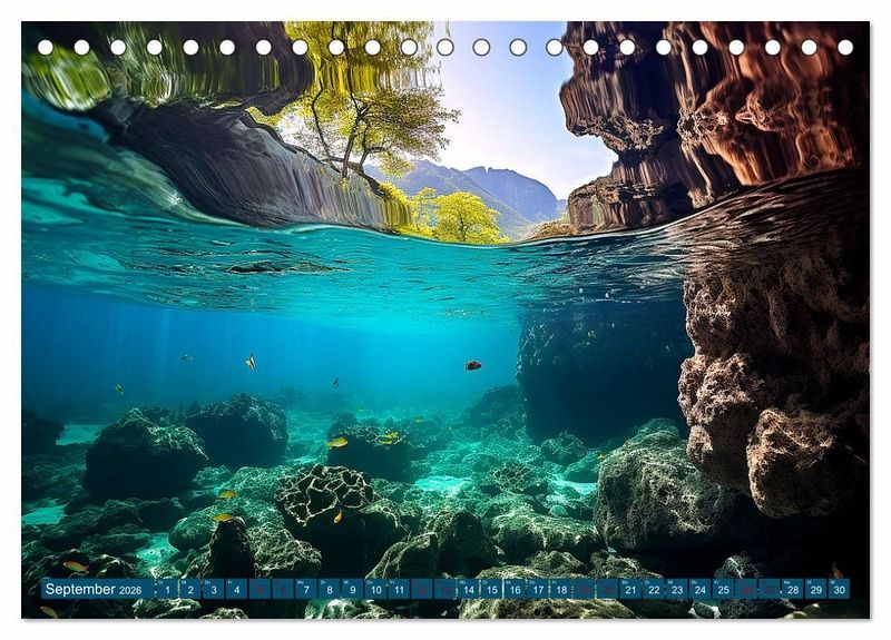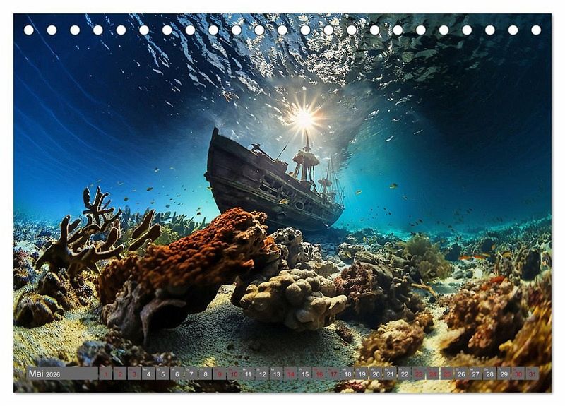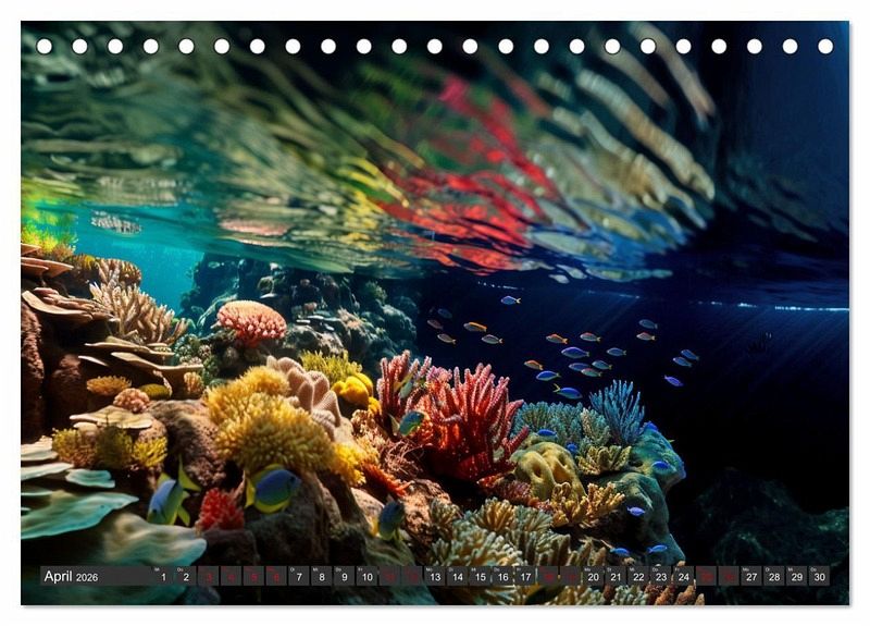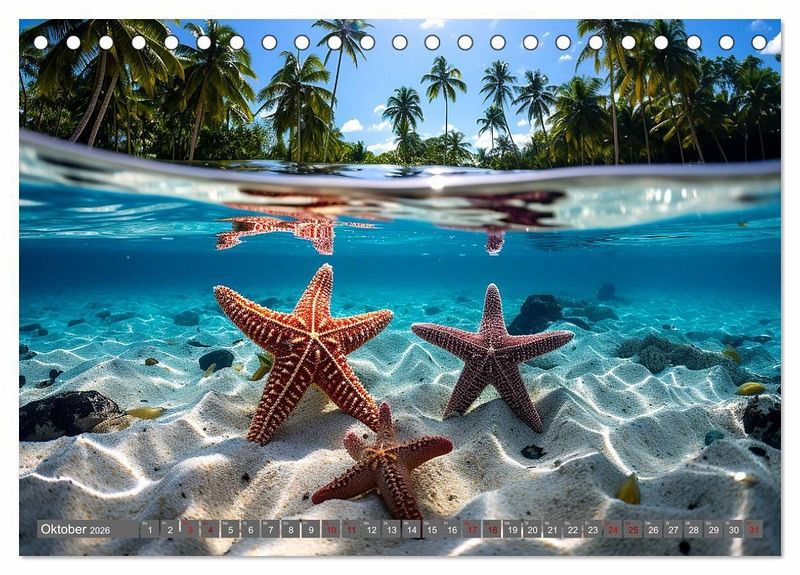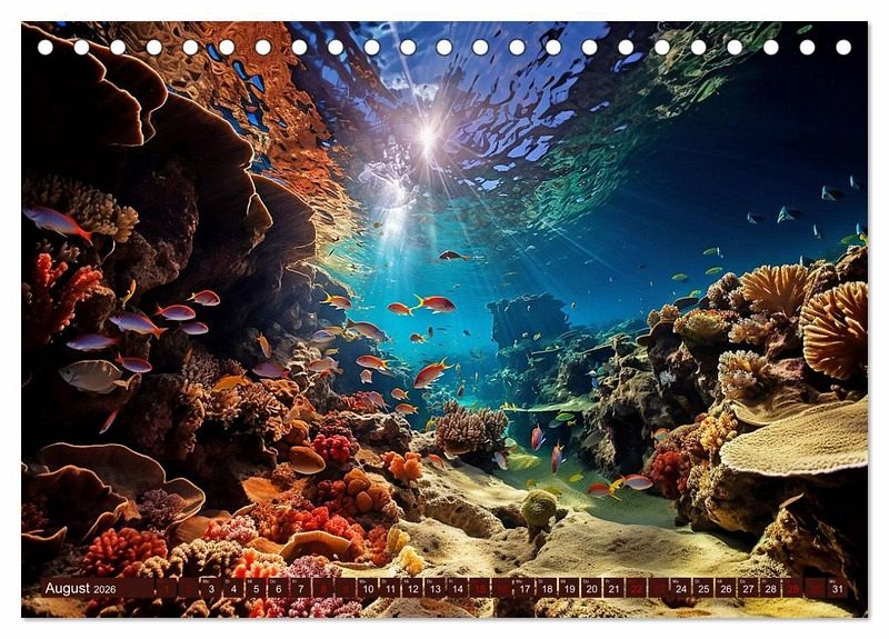 Dieser Kalender nimmt Sie mit auf eine bezaubernde Reise in die flachen Stellen der Ozeane mit Urlaubsfeeling. Tauchen Sie ein in eine Welt voller Farben, Muster und faszinierender Kreaturen, während Sie sich inspirieren lassen, diese Unterwasserparadiese mal selbst zu erkunden