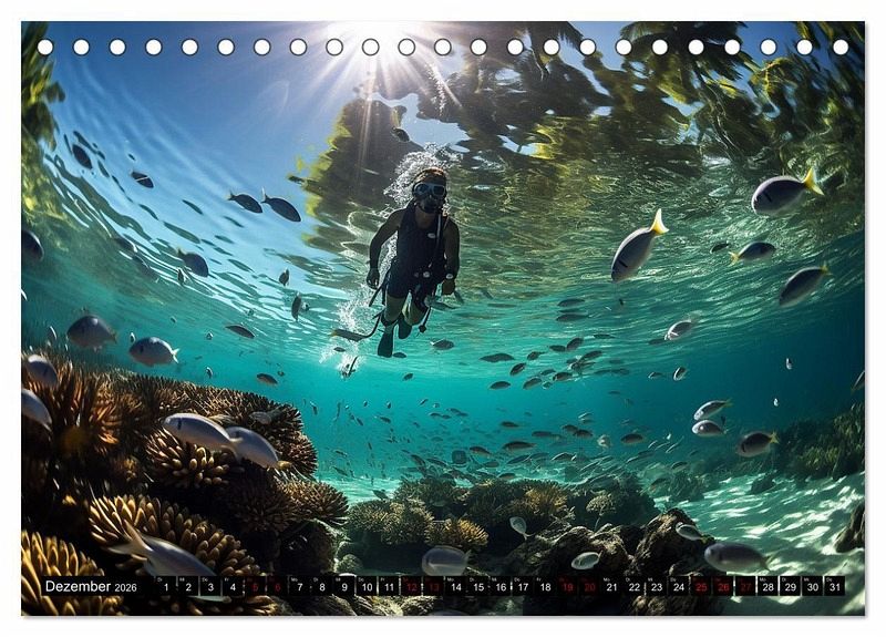 Dieser Kalender ist sowohl für Schnorchelliebhaber als auch für Meeresenthusiasten eine Quelle der Inspiration und des Fernwehs. Lassen Sie sich von der Schönheit der Unterwasserlandschaften verzaubern und träumen Sie von Ihren eigenen Schnorchelabenteuern.