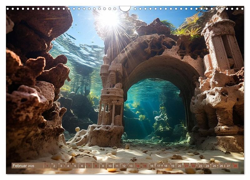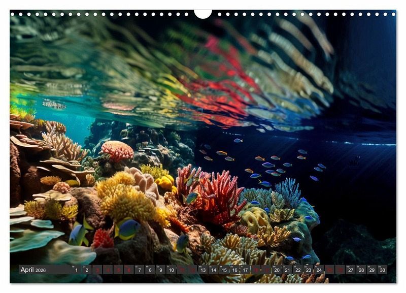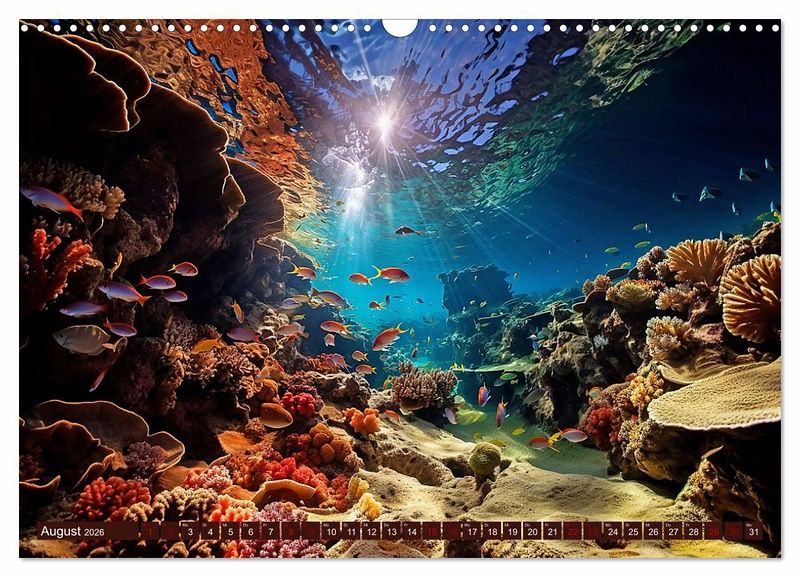 Dieser Kalender nimmt Sie mit auf eine bezaubernde Reise in die flachen Stellen der Ozeane mit Urlaubsfeeling. Tauchen Sie ein in eine Welt voller Farben, Muster und faszinierender Kreaturen, während Sie sich inspirieren lassen, diese Unterwasserparadiese mal selbst zu erkunden