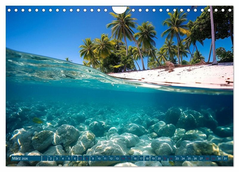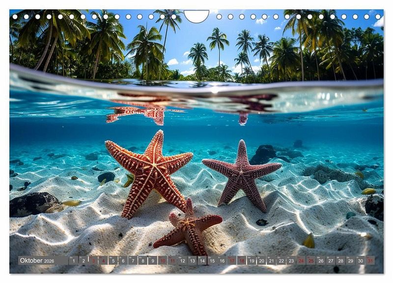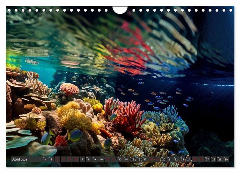 Dieser Kalender nimmt Sie mit auf eine bezaubernde Reise in die flachen Stellen der Ozeane mit Urlaubsfeeling. Tauchen Sie ein in eine Welt voller Farben, Muster und faszinierender Kreaturen, während Sie sich inspirieren lassen, diese Unterwasserparadiese mal selbst zu erkunden