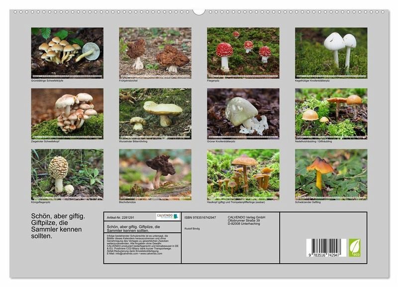 PREMIUM-LINIE - Brillanter Fotokalender mit 12 wunderschönen Motiven, Kunstdruck in Hochglanz in Museumsqualität.QUALITÄT - edle Materialien, stabile Rückwand mit 2 innovativen Einstecktaschen für eine optimale Präsentation an der Wand.NACHHALTIG - deutliche Abfallreduzierung durch bedarfsgerechte Einzelstückfertigung, umweltfreundliches FSC-zertifiziertes Papier, Produktion in Deutschland, klimabewusste Logistik.PERFEKTES GESCHENK - Kalender für Freunde und Familie, für Kinder und Erwachsene, jung und alt, zu Weihnachten, Geburtstag oder zwischendurch.Giftpilze, die Sammler kennen sollten. von Autor(in): Rudolf Bindig