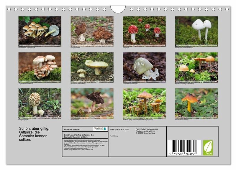 QUALITÄT - Hochwertiger Fotokalender mit 12 wunderschönen Motiven auf lichtbeständigem Bilderdruckpapier, robuste Spiralbindung mit Aufhängebügel.NACHHALTIG - deutliche Abfallreduzierung durch bedarfsgerechte Einzelstückfertigung, umweltfreundliches FSC-zertifiziertes Papier, Produktion in Deutschland, klimabewusste Logistik.PERFEKTES GESCHENK - Kalender für Freunde und Familie, für Kinder und Erwachsene, jung und alt, zu Weihnachten, Geburtstag oder zwischendurch.VIELFALT - Bildkalender in verschiedenen Formaten, z.B. DIN A5, DIN A4, DIN A3 sowie DIN A2. Ob Naturmotiv, Gemälde oder Fotos, ideal für ein persönliches Wohlfühlambiente.Giftpilze, die Sammler kennen sollten. von Autor(in): Rudolf Bindig