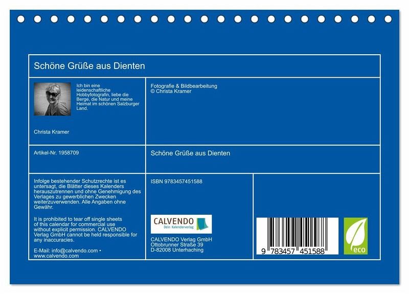 QUALITÄT - Hochwertiger Fotokalender mit 12 wunderschönen Motiven auf lichtbeständigem Bilderdruckpapier, robuste Spiralbindung.NACHHALTIG - deutliche Abfallreduzierung durch bedarfsgerechte Einzelstückfertigung, umweltfreundliches FSC-zertifiziertes Papier, Produktion in Deutschland, klimabewusste Logistik.PERFEKTES GESCHENK - Kalender für Freunde und Familie, für Kinder und Erwachsene, jung und alt, zu Weihnachten, Geburtstag oder zwischendurch.VIELFALT - Bildkalender in verschiedenen Formaten, z.B. DIN A5, DIN A4, DIN A3 sowie DIN A2. Ob Naturmotiv, Gemälde oder Fotos, ideal für ein persönliches Wohlfühlambiente.Beeindruckende Bilder aus Dienten am Hochkönig im Pinzgau von Autor(in): Christa Kramer