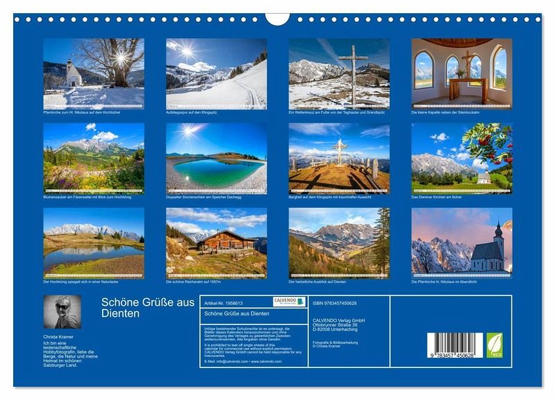 QUALITÄT - Hochwertiger Fotokalender mit 12 wunderschönen Motiven auf lichtbeständigem Bilderdruckpapier, robuste Spiralbindung mit Aufhängebügel.NACHHALTIG - deutliche Abfallreduzierung durch bedarfsgerechte Einzelstückfertigung, umweltfreundliches FSC-zertifiziertes Papier, Produktion in Deutschland, klimabewusste Logistik.PERFEKTES GESCHENK - Kalender für Freunde und Familie, für Kinder und Erwachsene, jung und alt, zu Weihnachten, Geburtstag oder zwischendurch.VIELFALT - Bildkalender in verschiedenen Formaten, z.B. DIN A5, DIN A4, DIN A3 sowie DIN A2. Ob Naturmotiv, Gemälde oder Fotos, ideal für ein persönliches Wohlfühlambiente.Beeindruckende Bilder aus Dienten am Hochkönig im Pinzgau von Autor(in): Christa Kramer