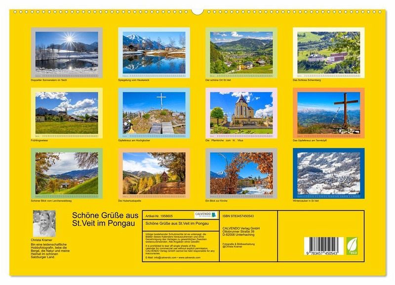 PREMIUM-LINIE - Brillanter Fotokalender mit 12 wunderschönen Motiven, Kunstdruck in Hochglanz in Museumsqualität.QUALITÄT - edle Materialien, stabile Rückwand mit 2 innovativen Einstecktaschen für eine optimale Präsentation an der Wand.NACHHALTIG - deutliche Abfallreduzierung durch bedarfsgerechte Einzelstückfertigung, umweltfreundliches FSC-zertifiziertes Papier, Produktion in Deutschland, klimabewusste Logistik.PERFEKTES GESCHENK - Kalender für Freunde und Familie, für Kinder und Erwachsene, jung und alt, zu Weihnachten, Geburtstag oder zwischendurch.Ein Kurort am Sonnenplateau über dem Salzachtal von Autor(in): Christa Kramer