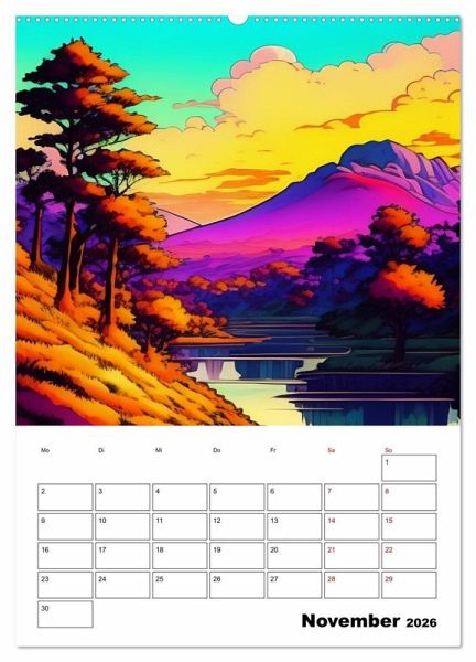 Lassen Sie sich von unseren KI erstellten farbenfrohen Landschaftsbildern verzaubern und holen Sie sich ein Stück Natur in Ihr Zuhause! Bestellen Sie noch heute unseren Wandkalender und erleben Sie die Schönheit der Welt jeden Tag aufs Neue.