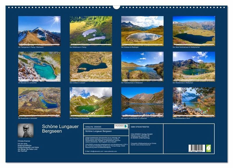 QUALITÄT - Hochwertiger Fotokalender mit 12 wunderschönen Motiven auf lichtbeständigem Bilderdruckpapier, robuste Spiralbindung mit Aufhängebügel.NACHHALTIG - deutliche Abfallreduzierung durch bedarfsgerechte Einzelstückfertigung, umweltfreundliches FSC-zertifiziertes Papier, Produktion in Deutschland, klimabewusste Logistik.PERFEKTES GESCHENK - Kalender für Freunde und Familie, für Kinder und Erwachsene, jung und alt, zu Weihnachten, Geburtstag oder zwischendurch.VIELFALT - Bildkalender in verschiedenen Formaten, z.B. DIN A5, DIN A4, DIN A3 sowie DIN A2. Ob Naturmotiv, Gemälde oder Fotos, ideal für ein persönliches Wohlfühlambiente.Die schönsten Bergseen im Lungau von Autor(in): Christa Kramer