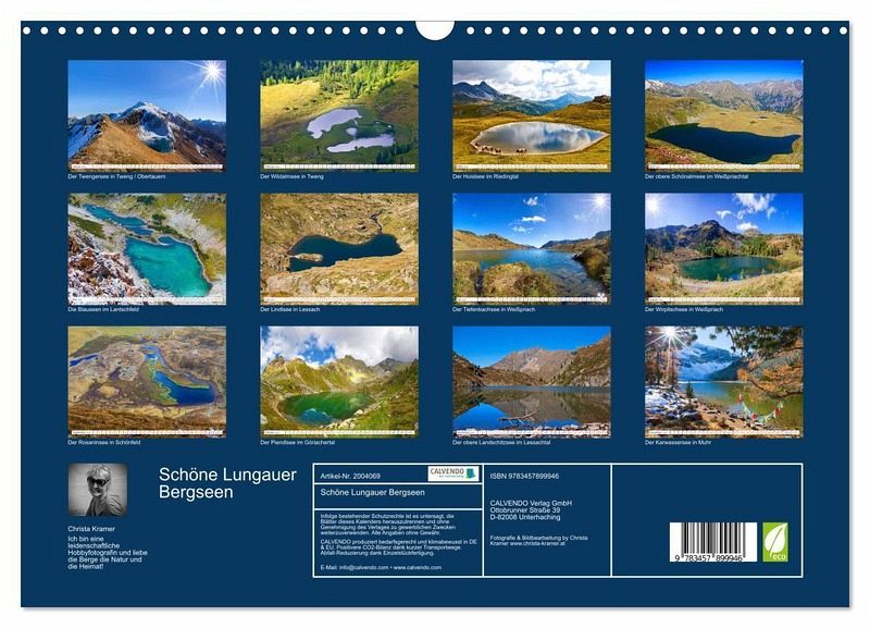 QUALITÄT - Hochwertiger Fotokalender mit 12 wunderschönen Motiven auf lichtbeständigem Bilderdruckpapier, robuste Spiralbindung mit Aufhängebügel.NACHHALTIG - deutliche Abfallreduzierung durch bedarfsgerechte Einzelstückfertigung, umweltfreundliches FSC-zertifiziertes Papier, Produktion in Deutschland, klimabewusste Logistik.PERFEKTES GESCHENK - Kalender für Freunde und Familie, für Kinder und Erwachsene, jung und alt, zu Weihnachten, Geburtstag oder zwischendurch.VIELFALT - Bildkalender in verschiedenen Formaten, z.B. DIN A5, DIN A4, DIN A3 sowie DIN A2. Ob Naturmotiv, Gemälde oder Fotos, ideal für ein persönliches Wohlfühlambiente.Die schönsten Bergseen im Lungau von Autor(in): Christa Kramer