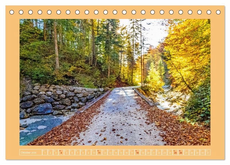 Der Herbst verwandelt die Landschaft in ein buntes Farbenmeer. Kurvenreiche Pfade schlängeln sich durch Wälder, die in leuchtendem Rot, Gold und Orange erstrahlen.