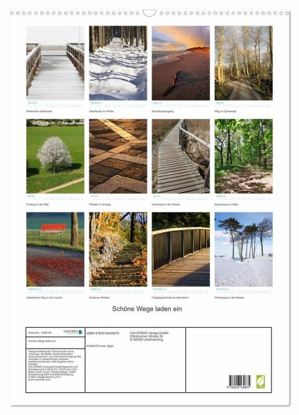 QUALITÄT - Hochwertiger Fotokalender mit 12 wunderschönen Motiven auf lichtbeständigem Bilderdruckpapier, robuste Spiralbindung mit Aufhängebügel.NACHHALTIG - deutliche Abfallreduzierung durch bedarfsgerechte Einzelstückfertigung, umweltfreundliches FSC-zertifiziertes Papier, Produktion in Deutschland, klimabewusste Logistik.PERFEKTES GESCHENK - Kalender für Freunde und Familie, für Kinder und Erwachsene, jung und alt, zu Weihnachten, Geburtstag oder zwischendurch.VIELFALT - Bildkalender in verschiedenen Formaten, z.B. DIN A5, DIN A4, DIN A3 sowie DIN A2. Ob Naturmotiv, Gemälde oder Fotos, ideal für ein persönliches Wohlfühlambiente.Farbige Fotografien von schönen Wegen von Autor(in): Anette Jäger