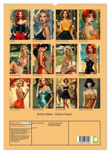 Lassen Sie sich mit "Schöne Zeiten - Schöne Frauen" verzaubern! Dieser stilvolle Pinup-Kalender präsentiert zwölf charmante Vintage-Schönheiten, inspiriert von der glamourösen Ära der 1950er Jahre. KI-generierte Motive voller Retro-Charme, Eleganz und Lebensfreude machen jeden Monat zu einem nostalgischen Blickfang. Ideal für Liebhaber klassischer Schönheit, Nostalgie und zeitloser Sinnlichkeit. Genießen Sie pure Vintage-Atmosphäre und feminine Klasse - Monat für Monat!