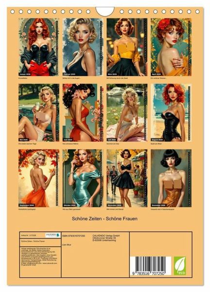 Lassen Sie sich mit "Schöne Zeiten - Schöne Frauen" verzaubern! Dieser stilvolle Pinup-Kalender präsentiert zwölf charmante Vintage-Schönheiten, inspiriert von der glamourösen Ära der 1950er Jahre. KI-generierte Motive voller Retro-Charme, Eleganz und Lebensfreude machen jeden Monat zu einem nostalgischen Blickfang. Ideal für Liebhaber klassischer Schönheit, Nostalgie und zeitloser Sinnlichkeit. Genießen Sie pure Vintage-Atmosphäre und feminine Klasse - Monat für Monat!