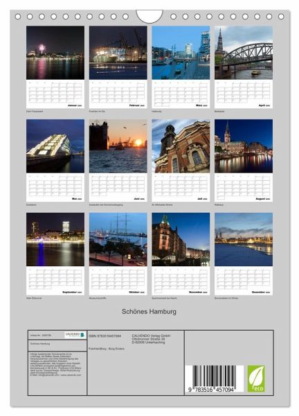 QUALITÄT - Hochwertiger Fotokalender mit 12 wunderschönen Motiven auf lichtbeständigem Bilderdruckpapier, robuste Spiralbindung mit Aufhängebügel.NACHHALTIG - deutliche Abfallreduzierung durch bedarfsgerechte Einzelstückfertigung, umweltfreundliches FSC-zertifiziertes Papier, Produktion in Deutschland, klimabewusste Logistik.PERFEKTES GESCHENK - Kalender für Freunde und Familie, für Kinder und Erwachsene, jung und alt, zu Weihnachten, Geburtstag oder zwischendurch.VIELFALT - Bildkalender in verschiedenen Formaten, z.B. DIN A5, DIN A4, DIN A3 sowie DIN A2. Ob Naturmotiv, Gemälde oder Fotos, ideal für ein persönliches Wohlfühlambiente.12 einmalige Aufnahmen aus der wohl schönsten Stadt Norddeutschlands von Autor(in): Borg Enders