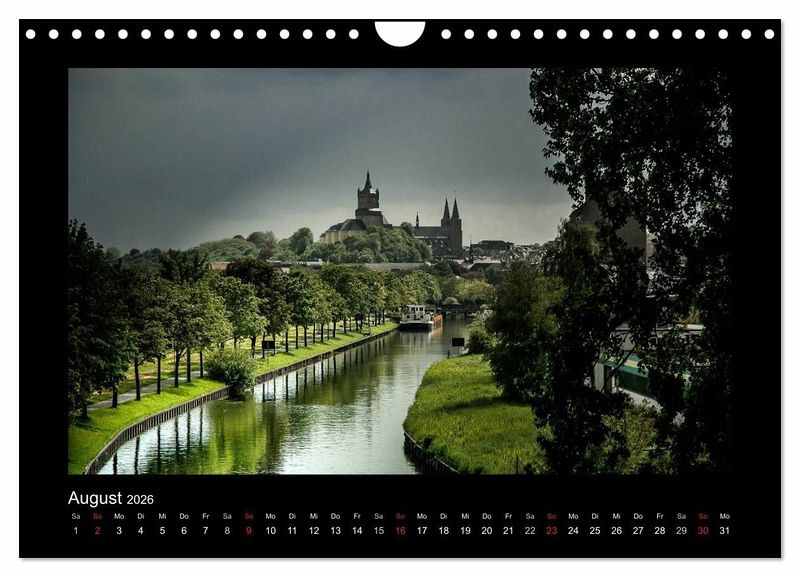 Kleve am Niederrhein...das ist nicht nur die imposante Schwanenburg, sondern Kleve verzaubert auch durch einzigartige, historische Gartenanlagen, prachtvolle Villen und die Lage inmitten grüner Natur. Die neue Hochschule Rhein-Waal bringt studentisches Leben und moderne Architekturakzente in die lebendige Kreisstadt. Geniessen Sie die Stadtansichten und lassen Sie sich von dem Kalender durch ganze Jahr begleiten.