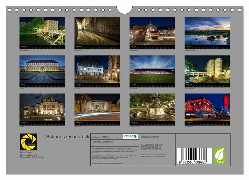 QUALITÄT - Hochwertiger Fotokalender mit 12 wunderschönen Motiven auf lichtbeständigem Bilderdruckpapier, robuste Spiralbindung mit Aufhängebügel.NACHHALTIG - deutliche Abfallreduzierung durch bedarfsgerechte Einzelstückfertigung, umweltfreundliches FSC-zertifiziertes Papier, Produktion in Deutschland, klimabewusste Logistik.PERFEKTES GESCHENK - Kalender für Freunde und Familie, für Kinder und Erwachsene, jung und alt, zu Weihnachten, Geburtstag oder zwischendurch.VIELFALT - Bildkalender in verschiedenen Formaten, z.B. DIN A5, DIN A4, DIN A3 sowie DIN A2. Ob Naturmotiv, Gemälde oder Fotos, ideal für ein persönliches Wohlfühlambiente.Die Friedensstadt Osnabrück von Ihrer schönsten Seite: "Im Abendlicht" von Autor(in): Oliver Schratz