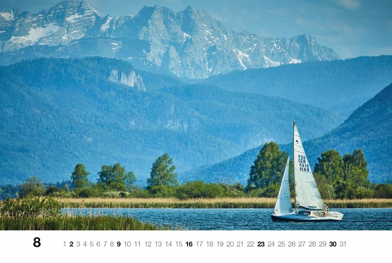 Gleich das Titelbild (und Julifoto) zeigt mehrere Drachen auf dem Alpenrandsee im Salzkammergut. Den Start im Januar macht allerdings eine 5-m-R-Yacht in der Sonderburger Bucht (Dänemark). Heftige Wetterphänomene sind auf dem Februarmotiv zu bewundern. Im April und Mai sind dann H-Boote auf dem Chiemsee unterwegs. Im August und Oktober bildet der Chiemsee noch einmal die Kulisse für eine kleine Yacht bzw. eine Sommerregatta. Der September zeigt klassische Holzjollen am bayerischen Ammersee. Den Abschluss im Dezember bildet der Vertenskreuzer „Feen“ bei der „Classic Week 2024“ vor Jütland (Dänemark). Auf der Rückseite des Titelblattes findet man kurze Erläuterungen.