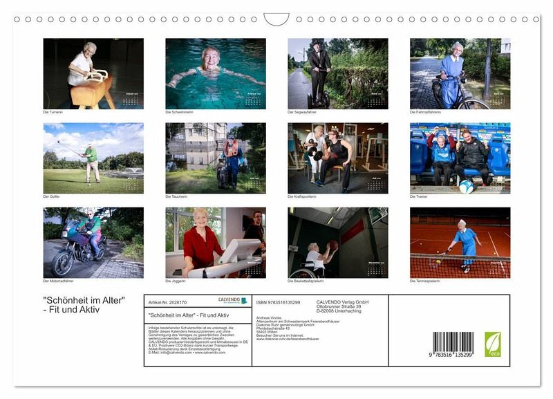 QUALITÄT - Hochwertiger Fotokalender mit 12 wunderschönen Motiven auf lichtbeständigem Bilderdruckpapier, robuste Spiralbindung mit Aufhängebügel.NACHHALTIG - deutliche Abfallreduzierung durch bedarfsgerechte Einzelstückfertigung, umweltfreundliches FSC-zertifiziertes Papier, Produktion in Deutschland, klimabewusste Logistik.PERFEKTES GESCHENK - Kalender für Freunde und Familie, für Kinder und Erwachsene, jung und alt, zu Weihnachten, Geburtstag oder zwischendurch.VIELFALT - Bildkalender in verschiedenen Formaten, z.B. DIN A5, DIN A4, DIN A3 sowie DIN A2. Ob Naturmotiv, Gemälde oder Fotos, ideal für ein persönliches Wohlfühlambiente.Senioren des Altenzentrums am Schwesternpark - Feierabendhäuser zeigen wieviel Spaß Sport im Alter bereiten kann. von Autor(in): Andreas Vincke