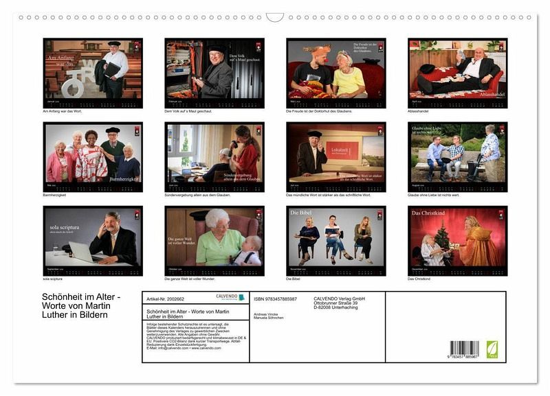 Das Altenzentrum Feierabendhäuser hat im 8. Kalender Aussagen und Aphorismen Martin Luthers in kreative Weise in die heutige Zeit interpretiert. Es sind moderne, ausdruckstarke und plakatähnliche Fotos entstanden, aus denen sich ein besonderer Kalender entwickelt hat. Dieser kann auch für die Gemeindearbeit, den Konfirmandenunterricht oder im Religionsunterricht eingesetzt werden.