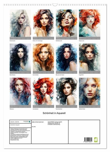 Erleben Sie das Jahr 2024 in seiner vollen Pracht mit diesem wunderschönen Aquarell-Frauenporträt-Kalender! Tauchen Sie ein in die Welt zeitloser Schönheit und Anmut, während Sie Monat für Monat von faszinierenden Darstellungen traumhafter Frauen verzaubert werden.