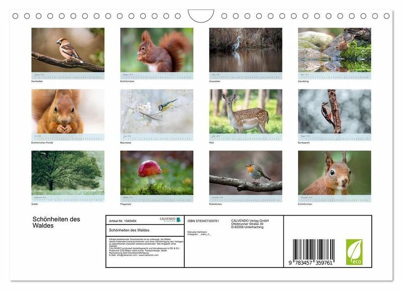 Tauchen Sie ein in die bezaubernde Welt unserer heimischen Wälder mit dem Kalender "Schönheiten des Waldes". Diese außergewöhnliche Sammlung einfühlsamer Fotografien begleitet Sie durch alle Jahreszeiten und zeigt die faszinierende Vielfalt von Tieren und Pflanzen im Wald. Die Fotografin hat jedes Bild mit Rücksicht auf die Natur geschaffen, um Naturliebhaber und Waldenthusiasten gleichermaßen zu begeistern. Genießen Sie die unvergleichliche Schönheit unserer Wälder das ganze Jahr über