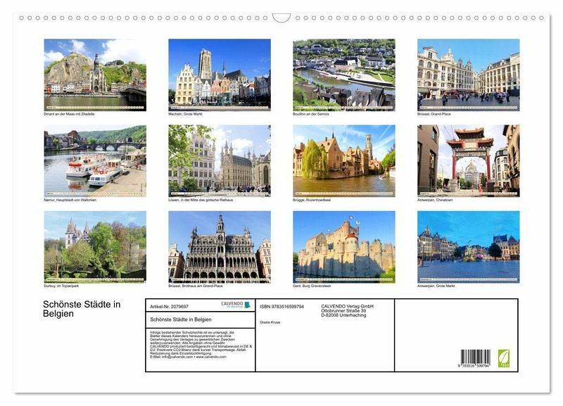 Belgien vereint auf kleinstem Raum eine beeindruckende Vielfalt an Städten - von märchenhaften Altstädten bis zu pulsierenden Kulturzentren. Dieser Kalender nimmt Sie mit auf eine Reise zu den schönsten Orten des Landes: dem märchenhaften Brügge, dem kosmopolitischen Brüssel und dem atemberaubenden Antwerpen. Oftmals übersehene Städte wie Mecheln und Löwen überraschen mit ihrem historischen Charme, genauso wie Dinant und Durbuy, der "kleinsten Stadt der Welt".