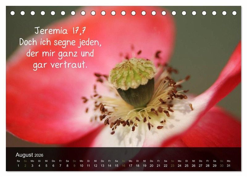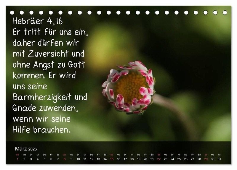 Dieser Kalender begleitet mit zwölf Impressionen aus Gottes Natur und wertvollen Bibelsprüchen durchs Jahr. Ideal zum Innehalten im Alltag!