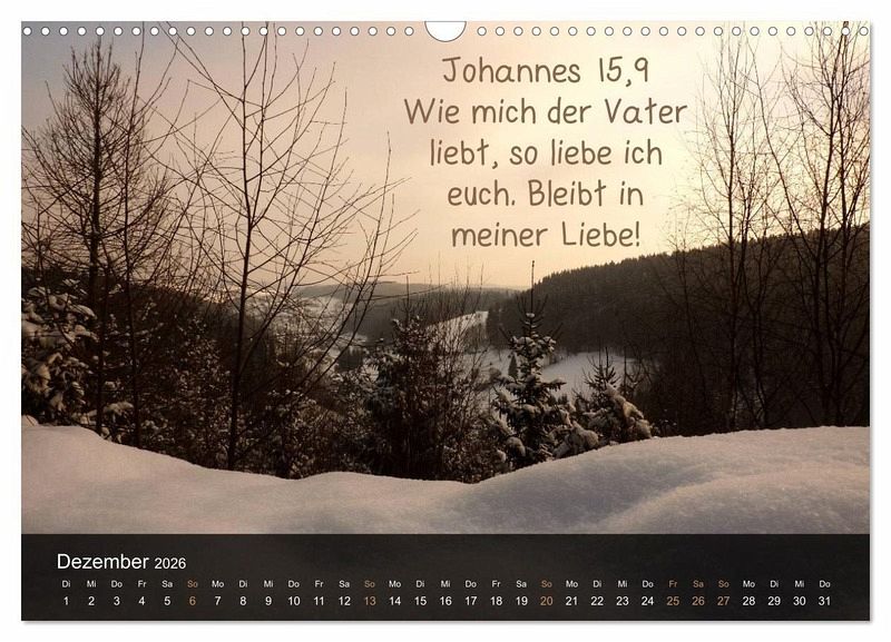 Dieser Kalender begleitet mit zwölf Impressionen aus Gottes Natur und wertvollen Bibelsprüchen durchs Jahr. Ideal zum Innehalten im Alltag!