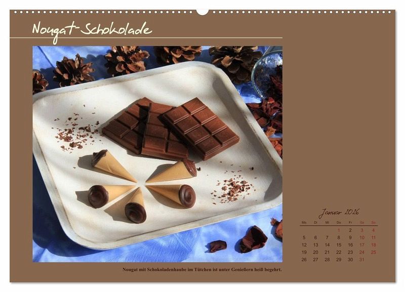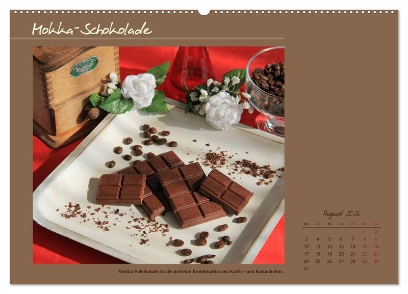 PREMIUM-LINIE - Brillanter Fotokalender mit 12 wunderschönen Motiven, Kunstdruck in Hochglanz in Museumsqualität.QUALITÄT - edle Materialien, stabile Rückwand mit 2 innovativen Einstecktaschen für eine optimale Präsentation an der Wand.NACHHALTIG - deutliche Abfallreduzierung durch bedarfsgerechte Einzelstückfertigung, umweltfreundliches FSC-zertifiziertes Papier, Produktion in Deutschland, klimabewusste Logistik.PERFEKTES GESCHENK - Kalender für Freunde und Familie, für Kinder und Erwachsene, jung und alt, zu Weihnachten, Geburtstag oder zwischendurch.10 Schokoladensorten im Porträt und 2 ausgewählte, einfache Rezeptideen zum Nachmachen. von Autor(in): Jana Thiem-Eberitsch