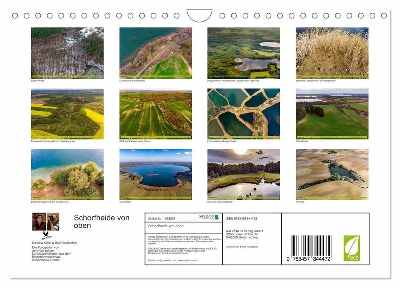 QUALITÄT - Hochwertiger Fotokalender mit 12 wunderschönen Motiven auf lichtbeständigem Bilderdruckpapier, robuste Spiralbindung mit Aufhängebügel.NACHHALTIG - deutliche Abfallreduzierung durch bedarfsgerechte Einzelstückfertigung, umweltfreundliches FSC-zertifiziertes Papier, Produktion in Deutschland, klimabewusste Logistik.PERFEKTES GESCHENK - Kalender für Freunde und Familie, für Kinder und Erwachsene, jung und alt, zu Weihnachten, Geburtstag oder zwischendurch.VIELFALT - Bildkalender inverschiedenen Formaten, z.B. DIN A5, DIN A4, DIN A3 sowie DIN A2. Ob Naturmotiv, Gemälde oder Fotos, ideal für ein persönliches Wohlfühlambiente.Die Fotografen zeigen Luftbildaufnahmen aus dem Biosphärenreservat Schorfheide-Chorin. von Autor(in): Ralf Roletschek