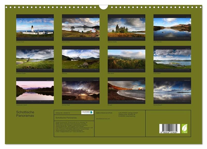 Wie könnte man die Schönheit Schottlands besser darstellen als im Panorama Format? Erleben Sie Schottland in diesem besonderem Format, das noch viel mehr Einblicke als ein normales Bild erlaubt. Die Fotokünstlerin Martina Cross hat 12 atemberaubende Panoramen aus ihrem Portfolio für Sie ausgesucht und in diesem Kalender zusammengebracht. Die Fotografin wurde mit dem Jurypreis in der Kategorie "Fotografin des Jahres" ausgezeichnet.