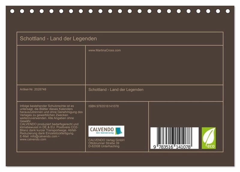 QUALITÄT - Hochwertiger Fotokalender mit 12 wunderschönen Motiven auf lichtbeständigem Bilderdruckpapier, robuste Spiralbindung.NACHHALTIG - deutliche Abfallreduzierung durch bedarfsgerechte Einzelstückfertigung, umweltfreundliches FSC-zertifiziertes Papier, Produktion in Deutschland, klimabewusste Logistik.PERFEKTES GESCHENK - Kalender für Freunde und Familie, für Kinder und Erwachsene, jung und alt, zu Weihnachten, Geburtstag oder zwischendurch.VIELFALT - Bildkalender in verschiedenen Formaten, z.B. DIN A5, DIN A4, DIN A3 sowie DIN A2. Ob Naturmotiv, Gemälde oder Fotos, ideal für ein persönliches Wohlfühlambiente.Schottland, mystisch, einsam, ein Land voller Legenden fotografiert im Panoramaformat von Autor(in): Martina Cross