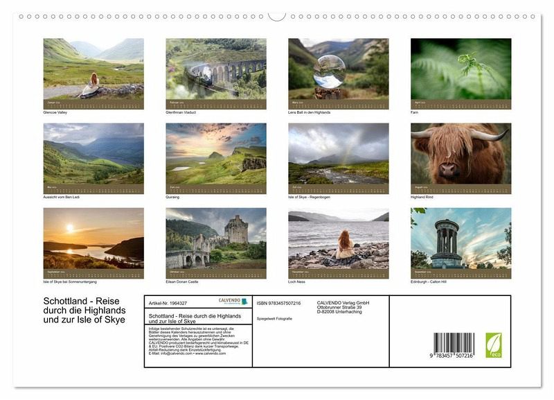 Entdecken Sie die atemberaubende Schönheit Schottlands mit unserem malerischen Kalender für das kommende Jahr! Tauchen Sie ein in die majestätischen Landschaften der Highlands und der Isle of Skye und lassen Sie sich von den faszinierenden Aufnahmen verzaubern.
