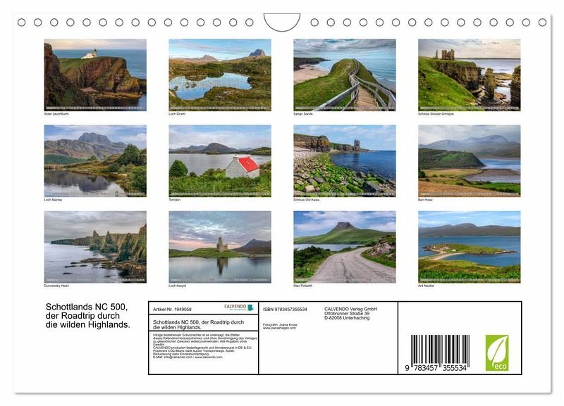 QUALITÄT - Hochwertiger Fotokalender mit 12 wunderschönen Motiven auf lichtbeständigem Bilderdruckpapier, robuste Spiralbindung mit Aufhängebügel.NACHHALTIG - deutliche Abfallreduzierung durch bedarfsgerechte Einzelstückfertigung, umweltfreundliches FSC-zertifiziertes Papier, Produktion in Deutschland, klimabewusste Logistik.PERFEKTES GESCHENK - Kalender für Freunde und Familie, für Kinder und Erwachsene, jung und alt, zu Weihnachten, Geburtstag oder zwischendurch.VIELFALT - Bildkalender in verschiedenen Formaten, z.B. DIN A5, DIN A4, DIN A3 sowie DIN A2. Ob Naturmotiv, Gemälde oder Fotos, ideal für ein persönliches Wohlfühlambiente.Erleben Sie die wilde Schönheit der schottischen Highlands auf einem fotografischen Roadtrip entlang der NC 500. von Autor(in): Joana Kruse