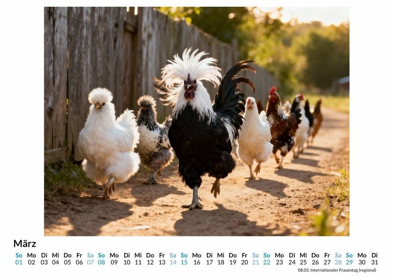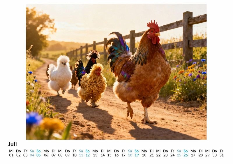 Wer hätte gedacht, dass Hühner so viel Charakter besitzen können? Der Kalender "Schräge Hühnerparade" stellt diese Frage gar nicht erst, er beantwortet sie mit zwölf unverwechselbaren Porträts von gefiederten Persönlichkeiten, die den Alltag mit einer gehörigen Portion Humor bereichern. Dieser Kalender ist eine ausgezeichnete Wahl für: * Liebhaber von Geflügel mit Persönlichkeit. * Suchende nach einem humorvollen und originellen Geschenk. * Alle, die ihren Wänden einen Farbtupfer mit einem Augenzwinkern verleihen möchten. Jeder Monat präsentiert ein gefiedertes Original, das mal mürrisch, mal verwegen oder einfach nur herrlich absurd in die Kamera blickt. Diese einzigartigen Charakterköpfe wurden nicht gemalt, sondern mit Hilfe von Algorithmen und einer Prise digitaler Magie erschaffen, um eine völlig neue Art von Hühnerporträts zu kreieren. Von der majestätischen Henne mit der extravaganten Frisur bis zum Hahn, dessen Blick Bände spricht, begleitet dieser Kalender durch das Jahr. Mit dem Kauf dieses Kalenders kann man Folgendes erwarten: * Zwölf charakterstarke Hühnermotive für jeden Monat des Jahres. * Ein praktisches Kalendarium zur Organisation von Terminen. * Eine monatliche Dosis Humor und gute Laune für Zuhause oder das Büro. Der Kalender "Schräge Hühnerparade" ist mehr als nur ein Zeitplaner; er ist eine Hommage an die Individualität im Hühnerstall. Es lohnt sich, einen Blick auf diese außergewöhnliche gefiederte Truppe zu werfen und sich von ihrer Einzigartigkeit durch das Jahr begleiten zu lassen.