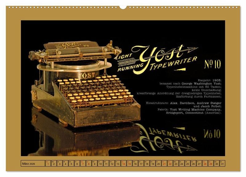 PREMIUM-LINIE - Brillanter Fotokalender mit 12 wunderschönen Motiven, Kunstdruck in Hochglanz in Museumsqualität.QUALITÄT - edle Materialien, stabile Rückwand mit 2 innovativen Einstecktaschen für eine optimale Präsentation an der Wand.NACHHALTIG - deutliche Abfallreduzierung durch bedarfsgerechte Einzelstückfertigung, umweltfreundliches FSC-zertifiziertes Papier, Produktion in Deutschland, klimabewusste Logistik.PERFEKTES GESCHENK - Kalender für Freunde und Familie, für Kinder und Erwachsene, jung und alt, zu Weihnachten, Geburtstag oder zwischendurch.Schreibmaschinen gehörten einst zum Alltag. von Autor(in): Stoerti-md
