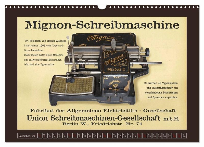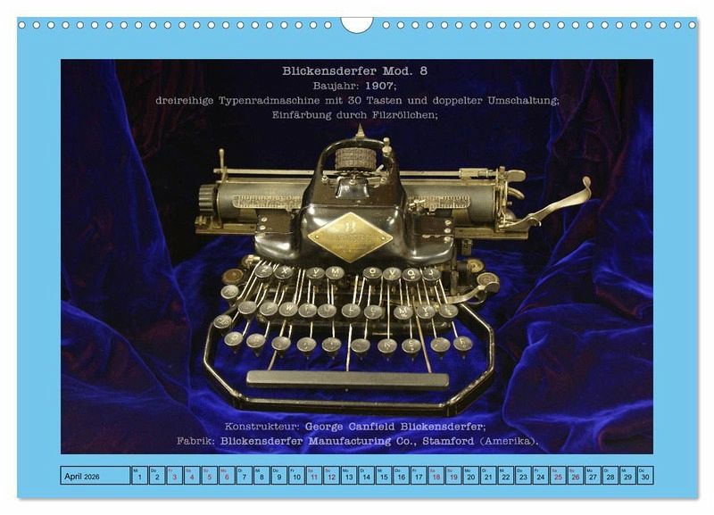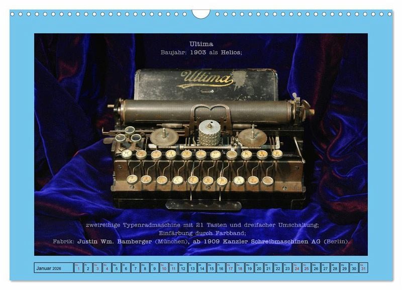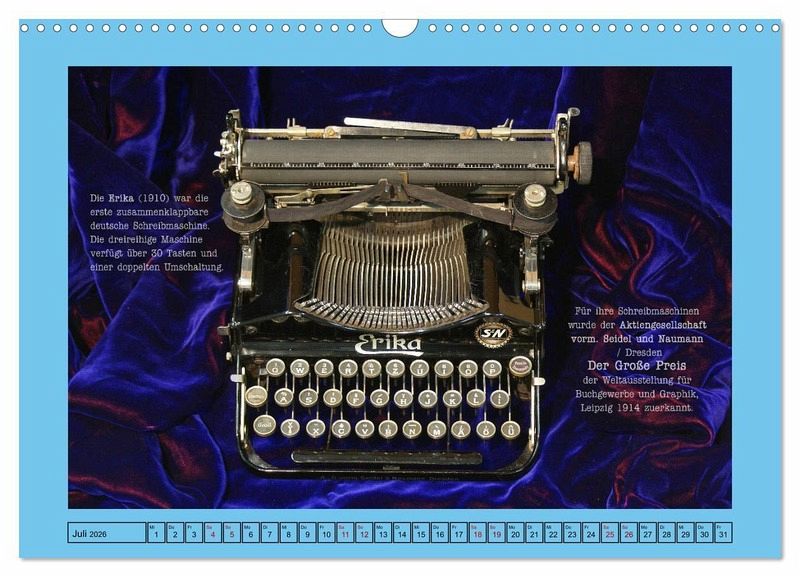 QUALITÄT - Hochwertiger Fotokalender mit 12 wunderschönen Motiven auf lichtbeständigem Bilderdruckpapier, robuste Spiralbindung mit Aufhängebügel.NACHHALTIG - deutliche Abfallreduzierung durch bedarfsgerechte Einzelstückfertigung, umweltfreundliches FSC-zertifiziertes Papier, Produktion in Deutschland, klimabewusste Logistik.PERFEKTES GESCHENK - Kalender für Freunde und Familie, für Kinder und Erwachsene, jung und alt, zu Weihnachten, Geburtstag oder zwischendurch.VIELFALT - Bildkalender in verschiedenen Formaten, z.B. DIN A5, DIN A4, DIN A3 sowie DIN A2. Ob Naturmotiv, Gemälde oder Fotos, ideal für ein persönliches Wohlfühlambiente.Schreibmaschinen gehörten einst zum Alltag. von Autor(in): Stoerti-md