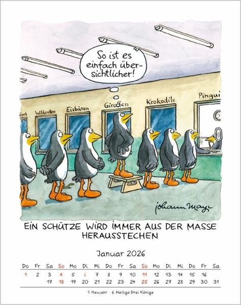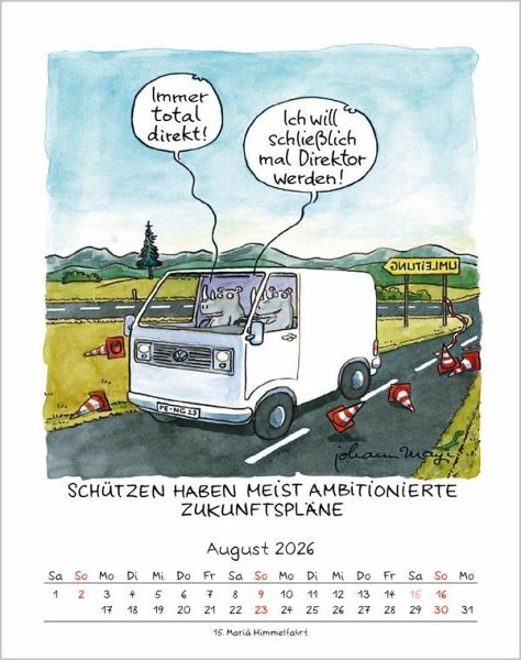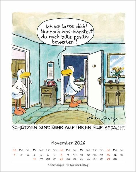Der erfolgreiche Sternzeichenkalender mit charmanten und witzigen Cartoons für jeden Monat von Johann Mayr.